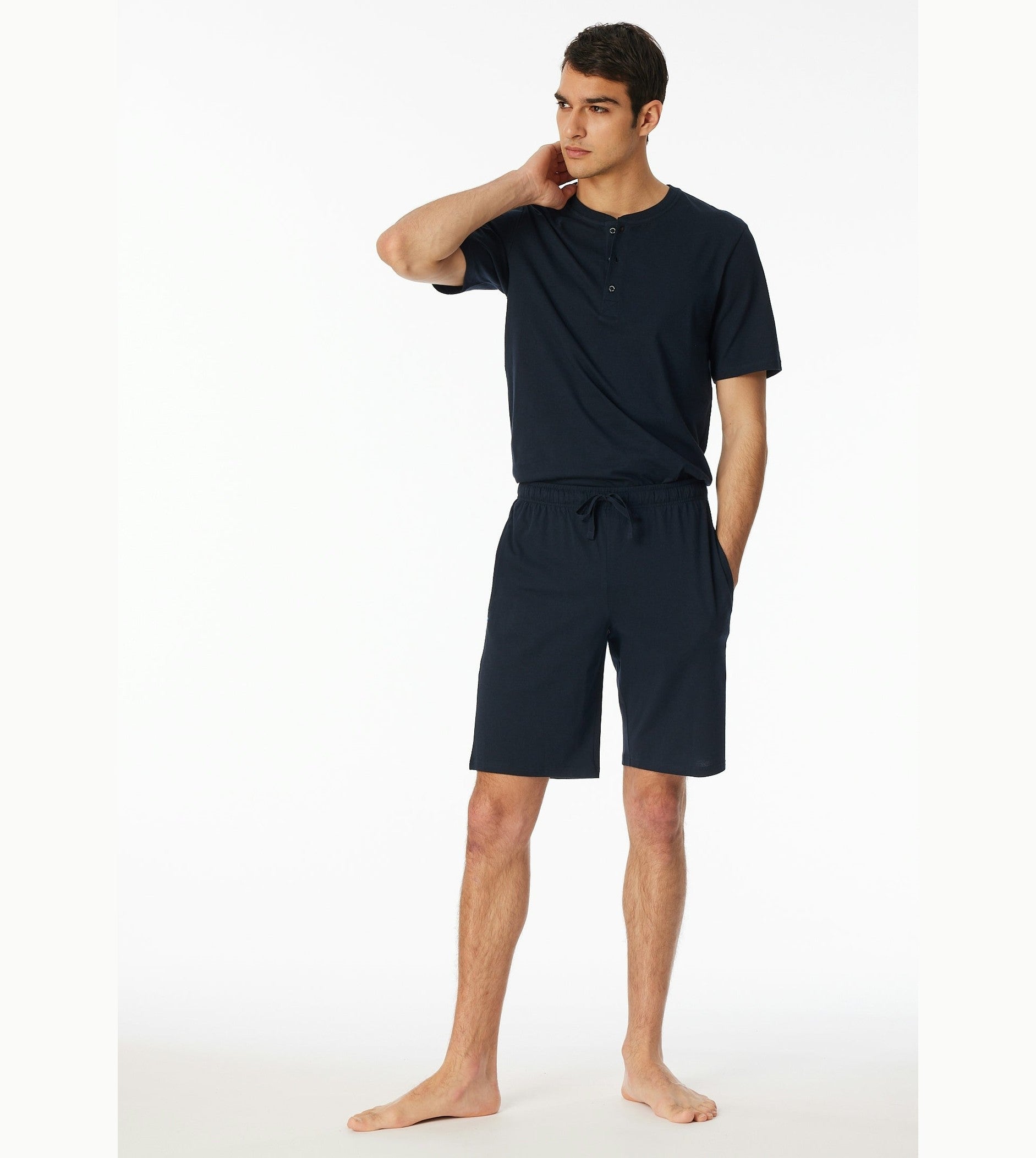 Donkerblauwe korte broek van de Mix + Relax serie van Schiesser uit de nachtgoedcollectie. Homewear van Schiesser wordt, zoals het ondergoed, gekenmerkt door een tijdloos design, een zeer degelijke afwerking in kwalitatief hoogstaande stoffen.