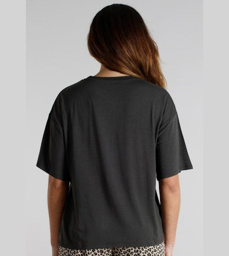 Het Tom Tailor dames pyjamashirt in klassiek donkergrijs ontwerp biedt een perfecte combinatie van eenvoud en comfort. Dit korte‑mouw shirt is gemaakt van een zachte, soepel vallende single jersey kwaliteit met een hoog viscosegehalte, speciaal ontworpen om je nachten en ontspannende momenten thuis comfortabel te maken. Het effen design zorgt voor een tijdloze look die moeiteloos past bij diverse pyjamabroeken en lounge‑sets.
